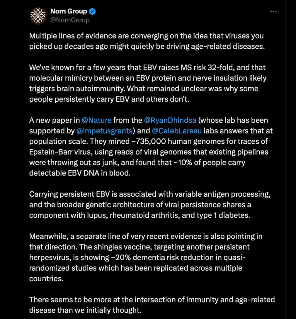 There’s unfortunately no vaccines for HSV - most ppl live with that mitochondrial damage which probably shortens lifespan.